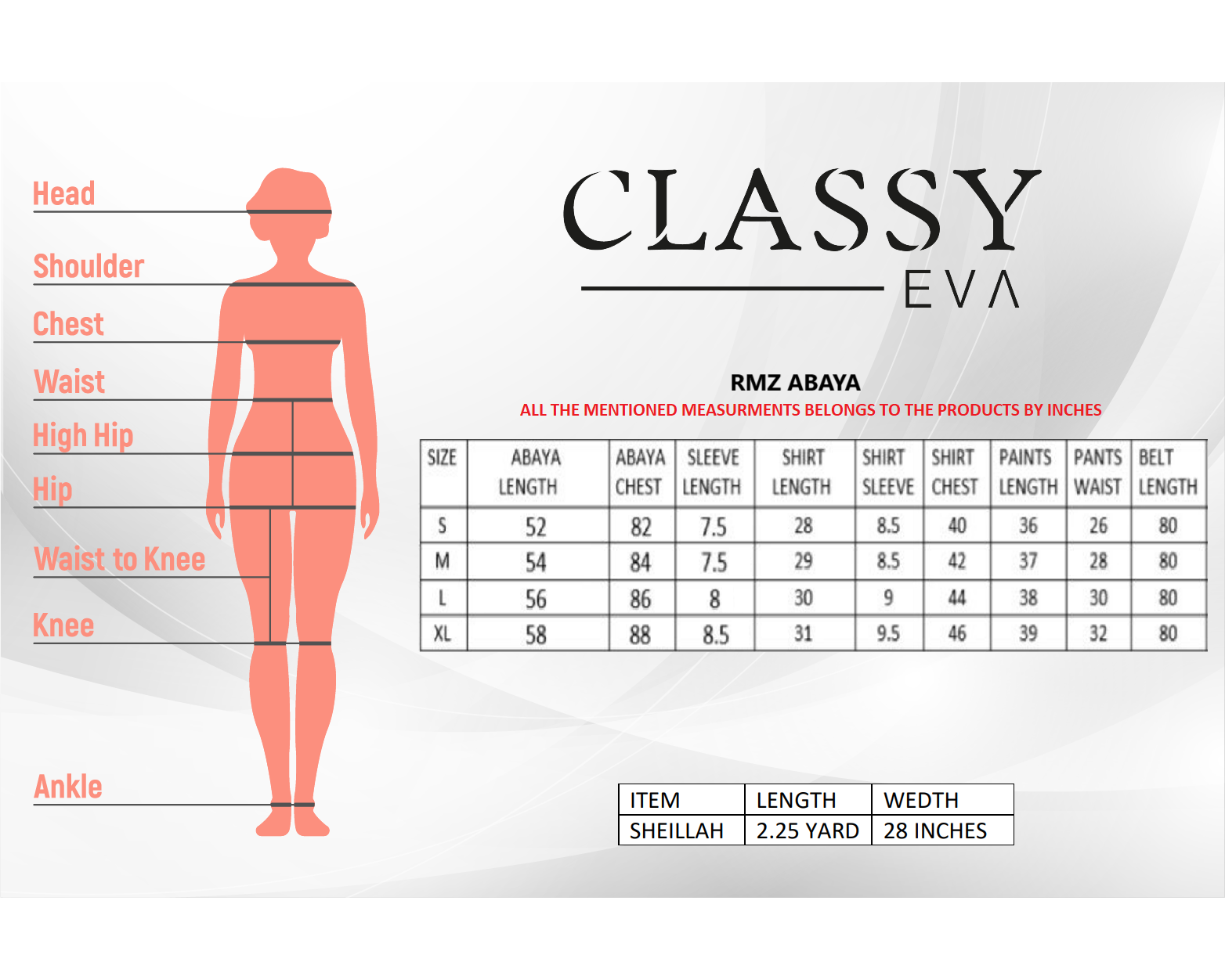 PARTS: ABAYA + SHEILAH + PANTS + DRESS+ BELT